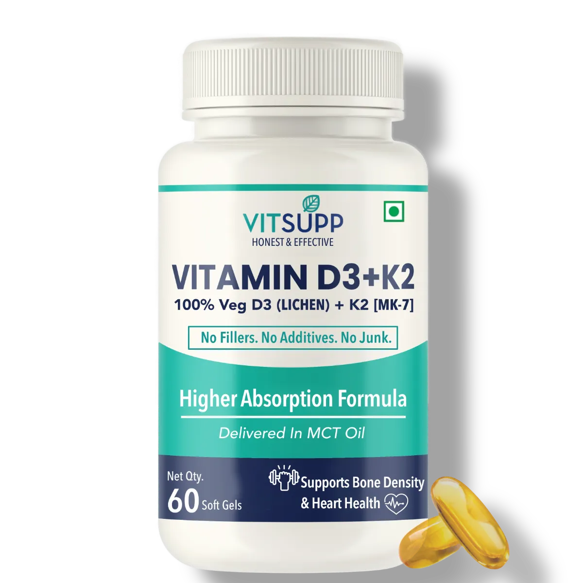 But when you buy vitamin D3 K2 capsules in India at VitSupp, you get a 100% vegetarian, highly absorbable formulation that is proven to work. Here is how it’s different: