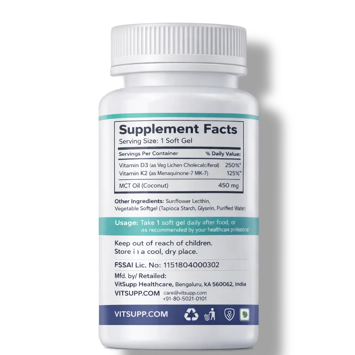Yes — 600 IU is an adequate amount to meet your vitamin D3 and vitamin K2 daily requirement. This dosage matches the Indian RDA (ICMR 2020) and is FSSAI compliant. Buy vitamin D3 K2 capsules in India at VitSupp- our supplements are formulated for adequate dosage and effectiveness, so you can experience the benefits of vitamin D3 and K2 together in just over a month.