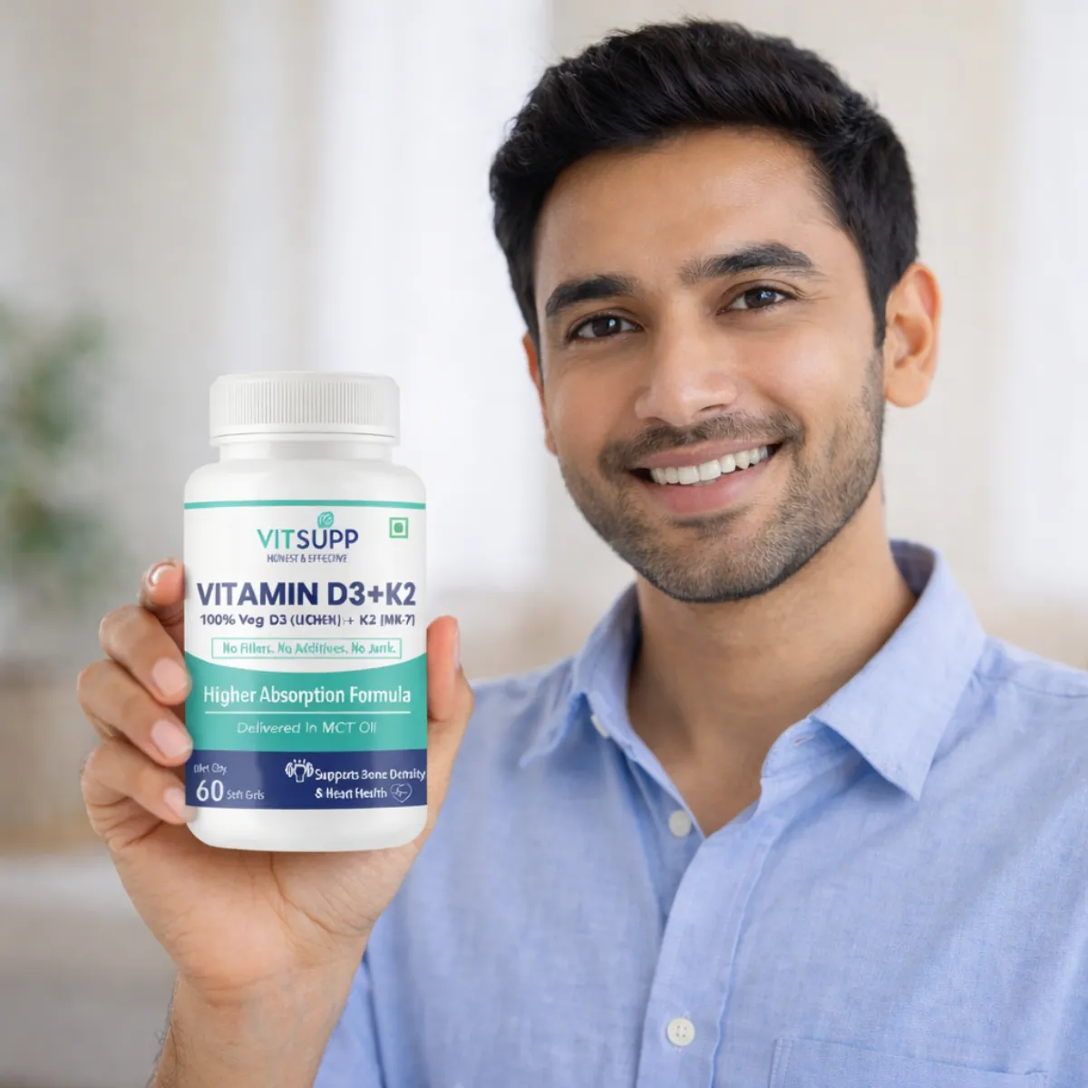 We created VitSupp D3+K2 Smart Absorb because we learnt from experience that taking only Vitamin D3 does not help the body. But when you add K2, the body can actually process the vitamin D3 better. Also, vitamin K2 improves calcium absorption and directs it to your bones (not arteries), enhancing the effectiveness of Vitamin D3. So if you want an effective, cofactor complete formulation that your body can actually absorb, buy vitamin D3 K2 capsules in India at VitSupp.